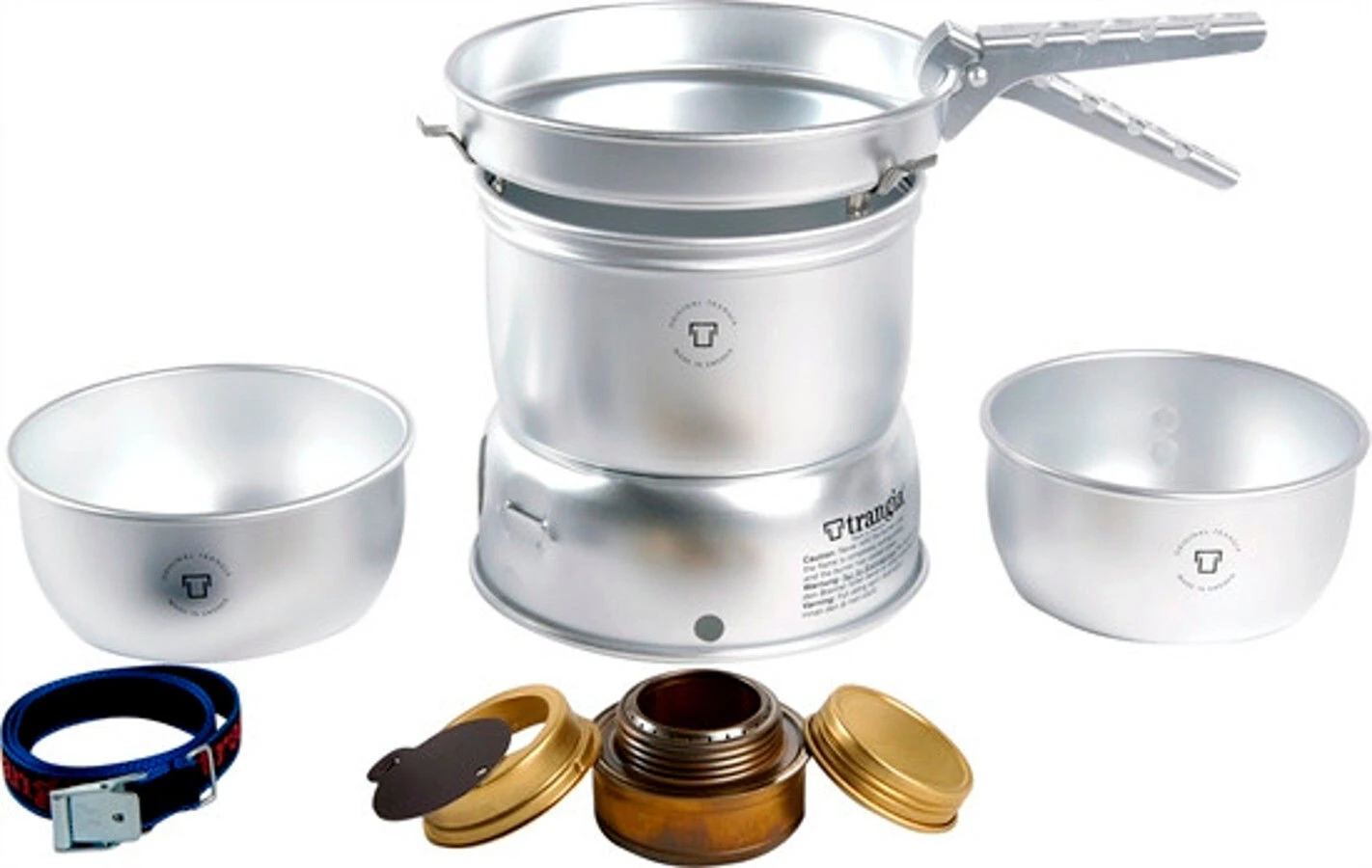 De 27-serie omvat kachels voor één of twee personen met kleinere kookgerei. Deze compacte kookset neemt weinig ruimte in beslag in uw rugzak. Het fornuis kan worden gebruikt met grotere potten uit het Trangia-assortiment met opgevouwen houders in de bovenste voorruit.